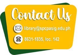 For lost, damaged or mutilated books, you may send an email to library@spcpasig.edu.ph or call 8631-1835 loc.142.